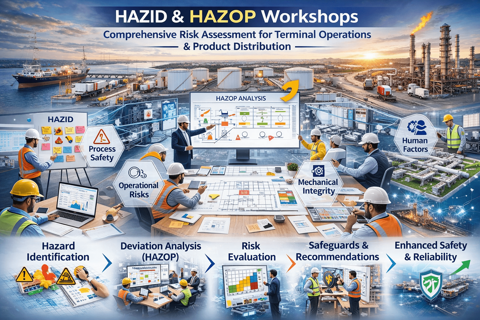 - Hazard identification (HAZID) and Hazard & Operability Studies (HAZOP)
