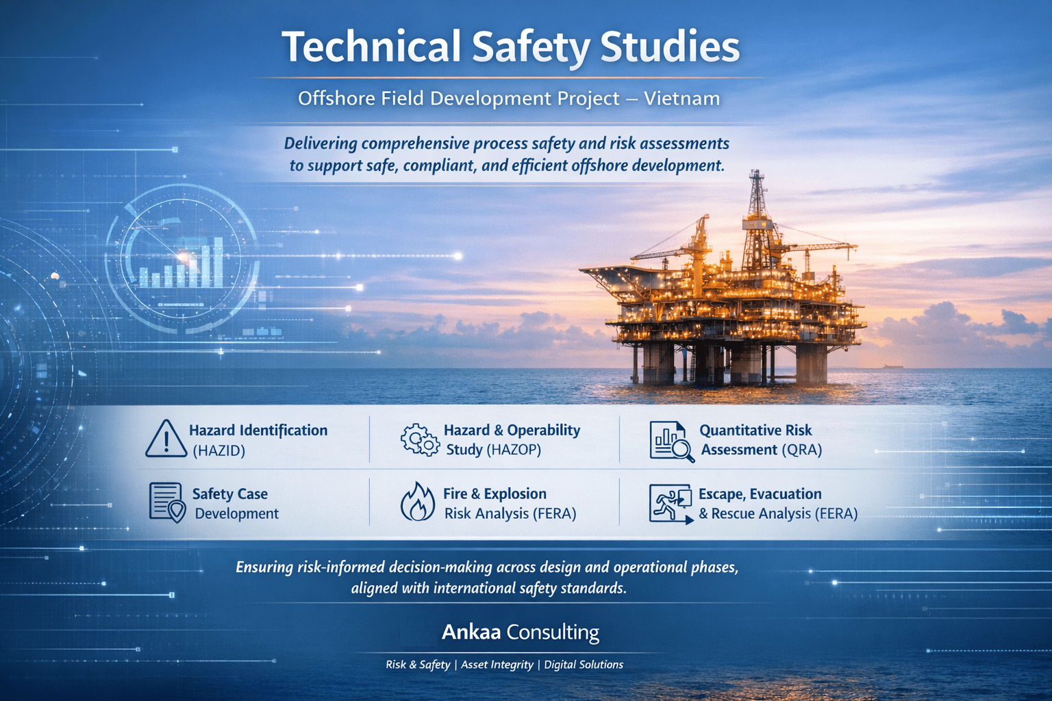 Ankaa Consulting offers a comprehensive portfolio of services that combine technical depth with cross-industry breadth. Leveraging our proprietary technologies, operational experience, and specialist expertise, we deliver solutions that enhance asset performance, integrity, and safety. Our core service segments include:
